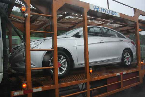 由車身造型與拖車上的HYUNDAI字樣,此輛運送途中的新車款應確定就是全新第六代Sonata車型。