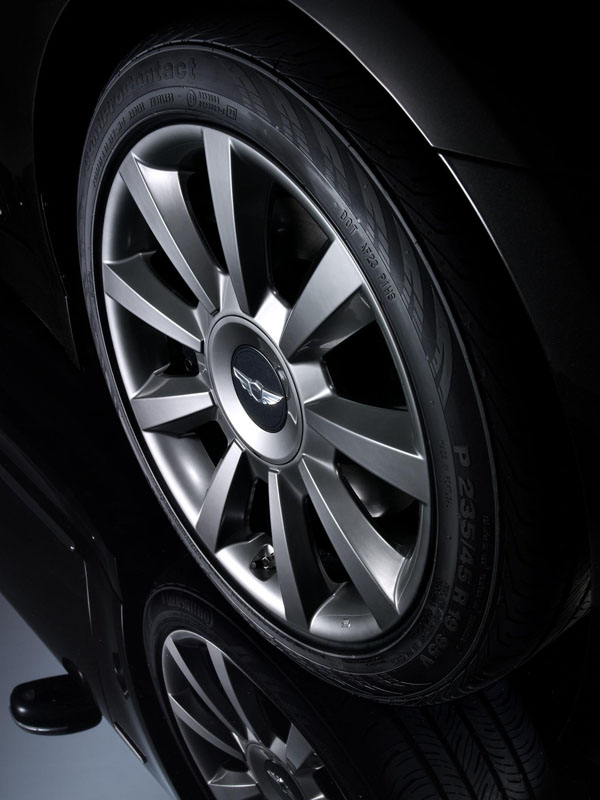 而與在與Prada的合作中,將由Prada精心妝點這款充滿時尚味的Genesis,首先外觀部分將提供Nero黑、Moro褐與經典的Baltico藍三種車色,並且皆採具珍珠光澤的三層塗層技術,讓車輛顯得格外亮眼,同時在水箱護罩、廠徽與車門把手部分都採用了Prada慣用的深色鍍鉻處理,搭配之19吋鋁合金輪圈部分也是由Prada負責操刀設計,此外,特別的是車頂的鯊魚鰭天線也經由Prada重新設計。最後也在兩側前葉子板鑲上Genesis Prada專屬銘牌以示身分。