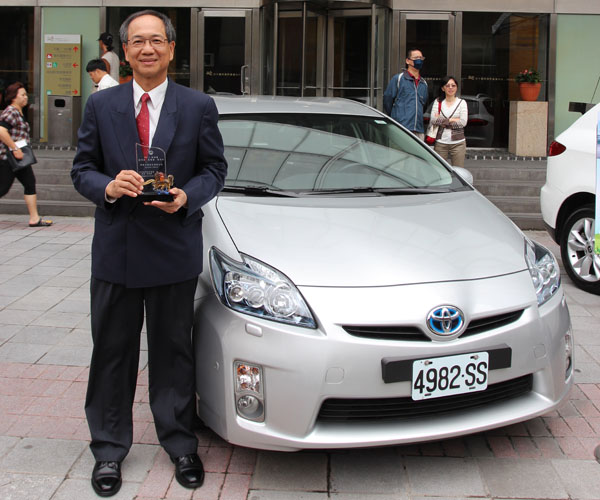和泰汽車張民杰副總經理與獲評2011年環保車的Toyota Prius合影。