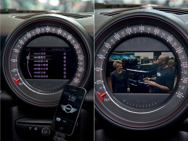 全新Mini Clubman Hampton推出的同時,原廠也同步發表專為台灣市場開發的Mini Visual Boost繁體中文螢幕,可整合行車相關資訊、USB介面音樂播放功能,更可用藍芽將手機資料傳輸至Mini Visual Boost同步顯示中文通訊錄,僅需透過操作桿及方向盤上的便利鍵即可輕鬆操作電話撥打。而最令人興奮的是只需透過原廠連接線,Apple裝置如iPod/iPhone/iPad中的影片*及專輯封面更可透過螢幕播放,讓視聽娛樂連線不間斷! 選配的Mini Visual Boost繁體中文螢幕亦供應於Mini全車系,讓愛車Mini化身最具個性的行動娛樂通訊中心!