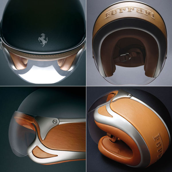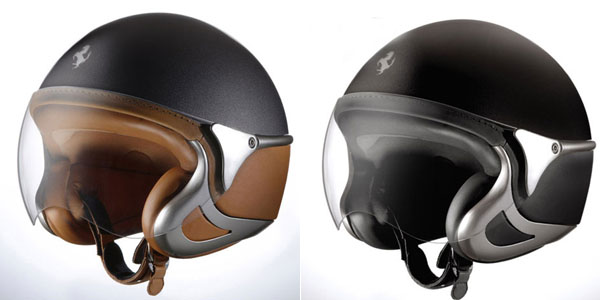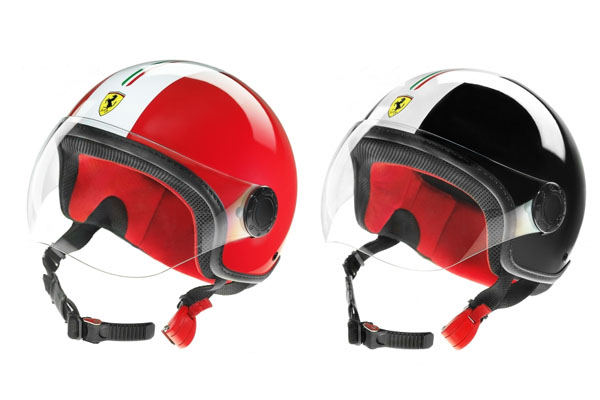 最後一款乃是由Ferrari與義大利知名安全帽商NewMax的合作結晶,以歐洲安全帽常見的俏麗3/4帽型為主體,後方帽體較一般3/4帽型更短翹的造型,乃是為避免騎士因穿著騎士領設計的皮衣或防摔衣與安全帽互相「卡位」的設計。具備灰色與黑色雙色選擇的此安全帽款,其中黑色款為全霧黑設計,而灰色款則為上灰下褐設計,並利用鋁合金與霧銀處理的塑料穿插,提升設計層次,也達到防刮的要求。