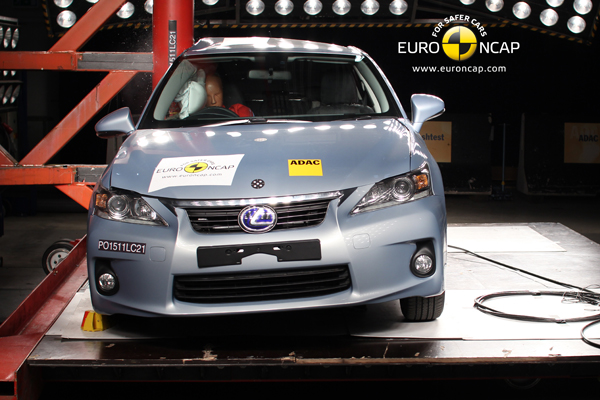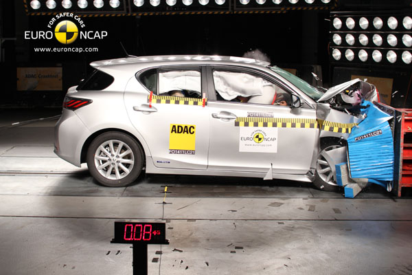 歐盟Euro NCAP日前發布歐洲新車安全碰撞測試結果,Lexus CT 200h獲得最高級別之五顆星成績。該車在正面撞擊、側面撞擊及側柱撞擊中,對成人的有效保護效率達到94%;而在對兒童安全保護的測試中,有效保護效率達到84%。針對行人安全保護方面,CT 200h的前保險桿對行人腿部安全的防護,更取得NCAP最高級分。故綜合成績以總分83分獲得5顆星的最高評價。