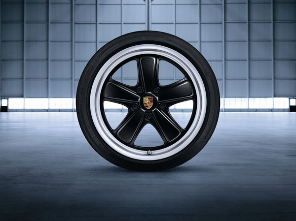19吋Sport Classic鋁圈融合經典的Fuchs設計造型,以高亮澤烤漆處理搭配拋光鋁圈外緣,同時加寬前後輪鋁圈尺寸,更添了911車系外型的運動元素;在改造外型美學的同時,也增進安全性與提昇動態表現。