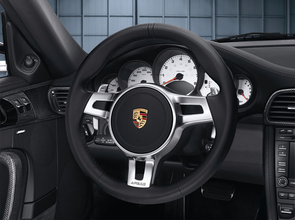 為了在車室內裝提昇個人品味,Porsche原廠開發出在左右盤輻後方設有換檔撥片的真皮包覆方向盤,以右邊撥片升檔、左邊撥片降檔,可提供賽車競速風格的換檔體驗;這項選配可供所有搭載PDK雙離合器自手排變速箱的911車型選裝。