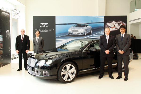 於全新Continental GT發表會中,總代理永三汽車也邀請了原廠亞洲暨中東區總裁Mr. Geoff Dowding〈右二〉與大中華區總裁Mr. David Mclntyre〈左二〉蒞臨參與,並且與永三汽車執行長張定民〈右一〉、總經理林志明〈左一〉和全新Continental GT一同合影。