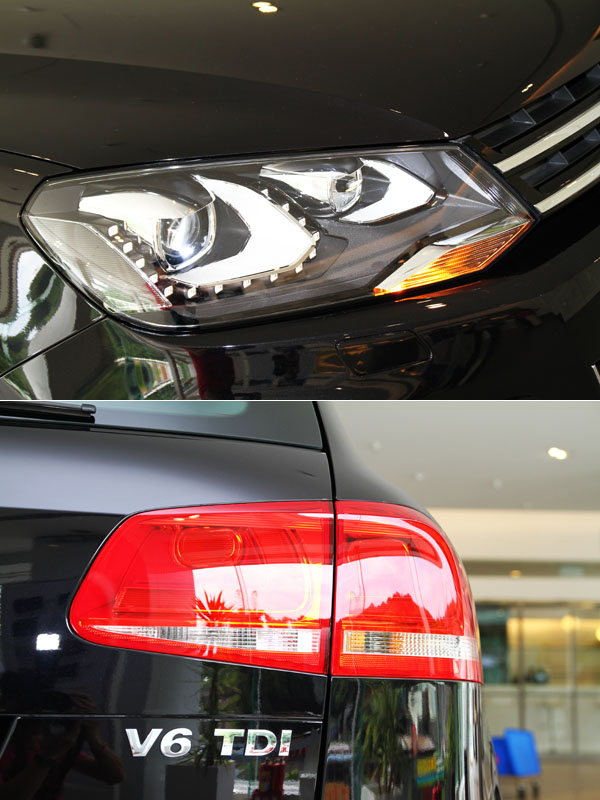 新一代Touareg頭燈造型從先前的眼眸式圓弧造型搖身一變為立體多角造型,尾燈造型也隨之呼應修改成較為低斜且向外延伸。