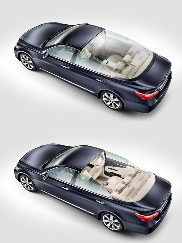 這次打造摩納哥皇室婚禮專用禮車的工程,Lexus特地與比利時改裝廠家Carat Duchatelet合作,將整輛LS 600h L 自B柱之後的車頂完全切除,換上由法國一家製造戰鬥機座艙罩的航太公司、以強化聚碳酸酯材質打造的透明玻璃,厚度達8mm,重量則僅為26kg,而該具透明車頂也可視需求完全拆除。