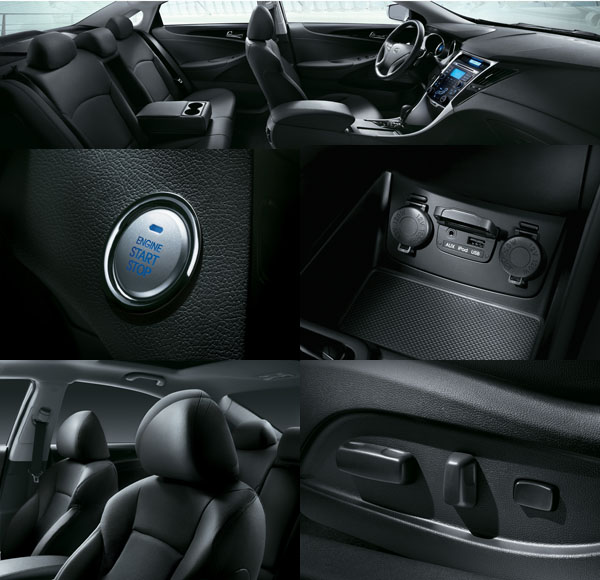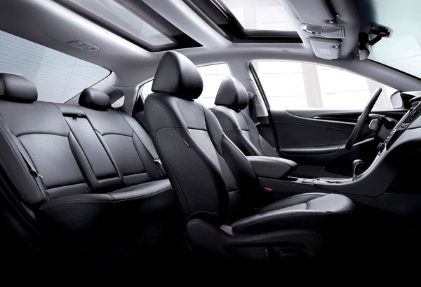 延續跑房車訴求,Sonata以黑色系真皮內裝,黑色鋼琴鏡面飾板,結合精緻軟質塑料,雙筒跑格儀表,全車系配置F1方向盤換檔撥片,整體座艙呈現科技藍調冷光,形成了以跑車設計為靈感的戰鬥座艙。