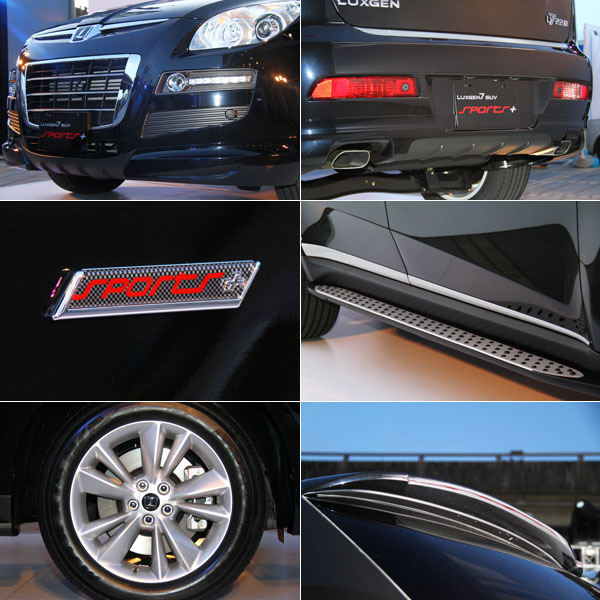 Luxgen7 SUV Sports+以Luxgen7 SUV車身為基礎,搭載Sports+專屬前後空力套件、Sports+空力擾流尾翼、Sports+車側踏板及Sports+車身飾條,且為強化Luxgen7 SUV Sports+內外兼具的動感氛圍,車室內部導入全新紅黑雙色內裝、紅色縫線高質感內門真皮把手、紅色縫線真皮包覆方向盤及Luxgen專屬電繡字樣等,讓車室空間內充滿強烈的跑格節奏,再加上航太智慧高反差儀錶板搭載類鈦金屬中控台飾板,營造出飛航式智慧駕駛座艙的未來感,由內而外散發出專屬於Sports+的超炫動感造型。