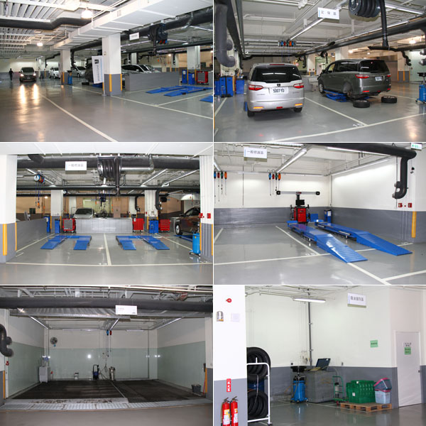 地下室一樓規劃完善且導入諸多先進維修配備的維修保養區。