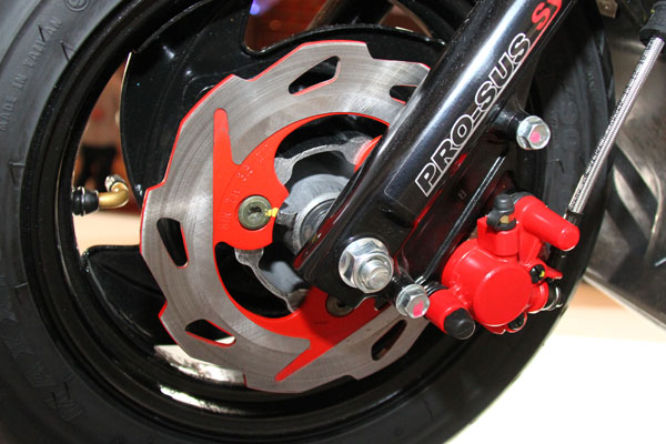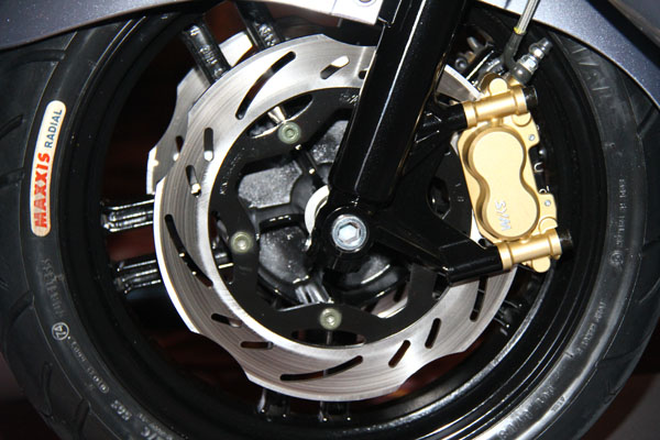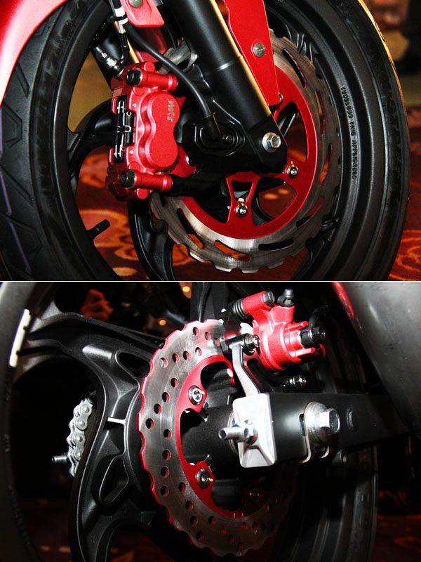 前輪碟煞規格也配上了輻射對四卡鉗。