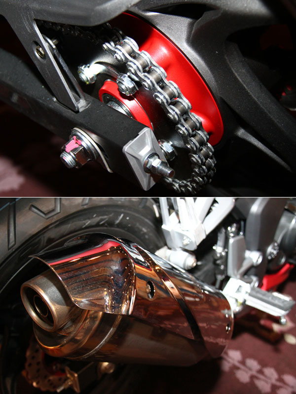 採用紅色塗裝的哈姆結構,而右側的排氣管則以電鍍亮光表面呈現。