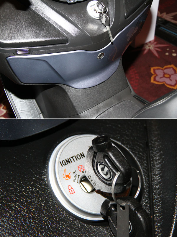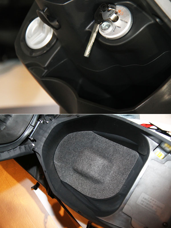 前開放式置物空間與座墊下置物處,值得一提的是,座墊開啟方式依舊為右側把手上的按鍵式啟動。