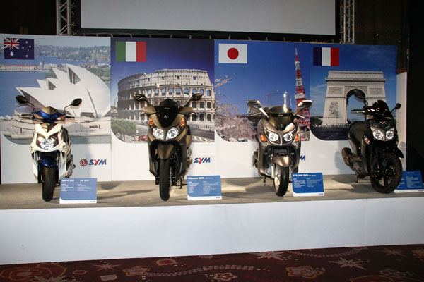 現場也一字排開外銷全球的重點機種,由左至右分別為Jet 4 125、Citycom 300i、GTS 300i EVO與HD2 200i。