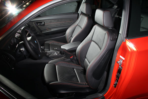 除了機能性的空間配置,專屬1系列M Coupe的M款套件,以黑色為基調的M款雙環儀表板與紅色指針,搭配飾以橘色縫線的Boston真皮內裝、深色麂皮飾板、環繞式駕駛座艙設計,以及M款排檔桿,展現不言而喻的勁跑靈魂。同樣以橘色縫線點綴的真皮跑車座椅,於雙前座頭枕上烙有M Logo的標記,在高速、多彎的行進中提供極佳側向支撐力;充氣式的腰靠則為背部帶來支撐性。