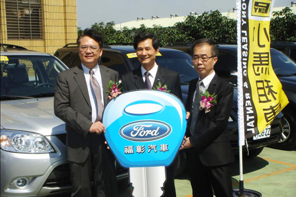 (左起)福特六和營銷服務處副總程春午先生、福彰汽車董事長蕭肇嘉先生、小馬租車集團總經理黃國財先生,共同宣布活動開始。