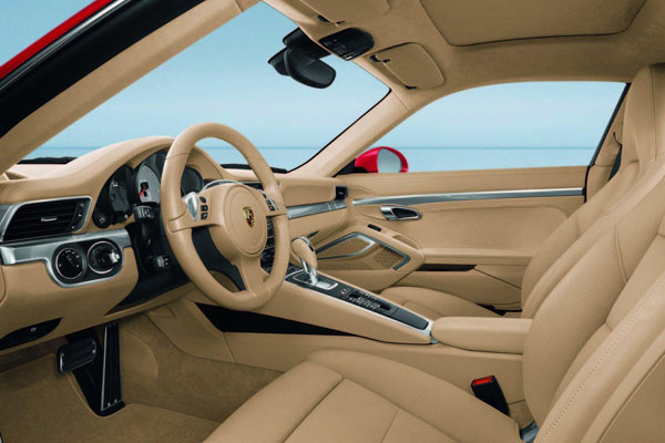 至於在內裝部分,則維持了較多地現有元素,控台設計改變並不多,除了提升整體質感外,較明顯的不同在於中央鞍座部分融入了與Panamera相仿地機艙化操作介面;而由於首波公佈之廠照中的車型配置PDK變速系統,並非手排車型,因此日前在測試影片中隱約露出的七速手排變速系統並未出現,因此暫時無法證實新一代911真的會提供七速手排變速系統。
