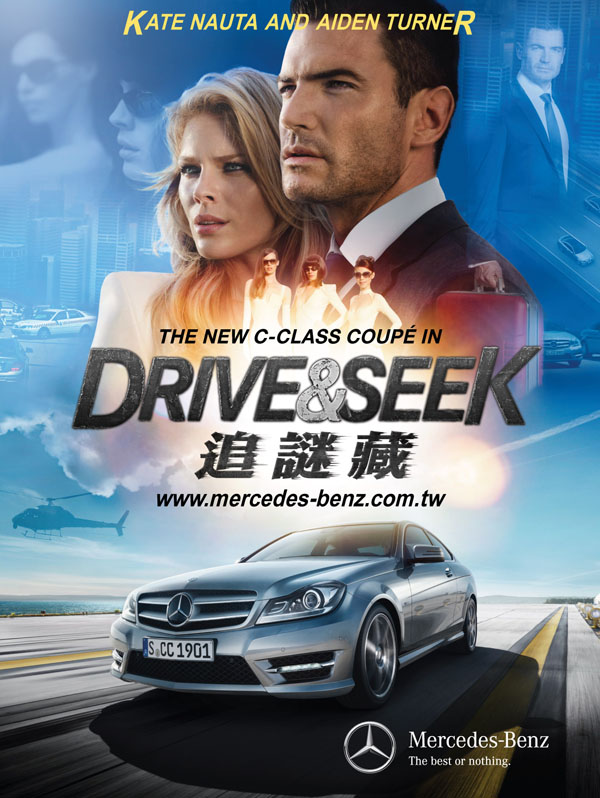 行銷手法日新日異,眾多好萊塢強檔鉅片中,不難發現Mercedes-Benz三芒星的動感時尚、引領潮流的身影-「穿著PRADA的惡魔」尊貴指標地位象徵的S-Class、「國家寶藏」衝鋒陷陣、身形俐落的C-Class、「慾望城市」中時尚率性的GLK、阿布達比頂級飯店前出現Maybach、E-Class Cabiolet、到「變形金剛3」凌厲有形、搶盡鋒頭的SLS AMG, Mercedes-Benz旗下多款經典車款,在片中都有吃重的角色。不僅如此,以品牌宣言“The best or nothing”做為準則的Mercedes-Benz,終於為C-Class Coupe量身打造首部迷你電影「Drive & Seek追謎藏」,C-Class Coupe成功協助一群菁英特務取回畢卡索的失竊名畫,於片中大展身手、穿越城市鄉野、公路上高速追逐、完全展現其敏捷、設計、安全與舒適性;而男主角Aiden Turner曾獲得艾美獎提名、女主角Kate Nauta也曾於玩命快遞II中有精湛演出;全片遠赴南非、馬來西亞、新加坡及西班牙取景,拍攝長達數月之久、耗資鉅額,精彩可期。