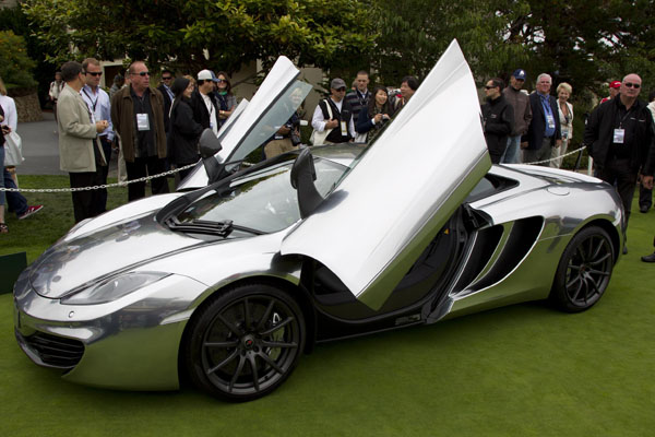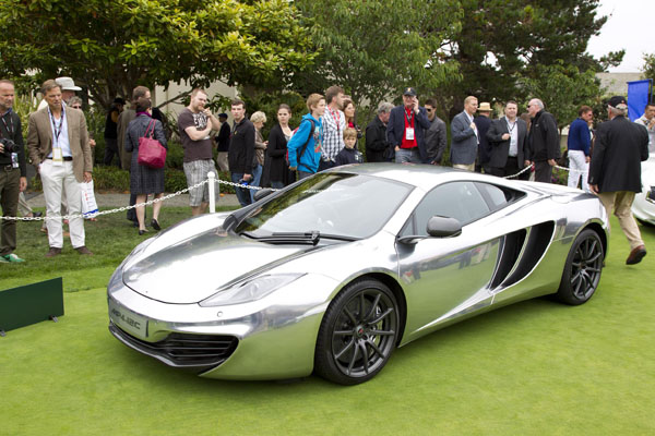 在超跑車壇中已經具有崇高地位的McLaren,在推出新世代超跑MP4 - 12C後,積極的拓展超跑業務,因此在有了〝McLaren Special Operations〞客製化服務後,將可以讓車主依據個人的喜好,打造一輛專屬於自己獨有座駕;在Pebble Beach Concours d’Elegance經典車展中,展出了兩輛客製化車輛,其中一輛採用了特殊地亮面火山熔岩橘塗裝搭配全亮面黑車頂,並且搭配了一系列的碳纖維套件,除了有碳纖維/真皮方向盤,包括前輪拱散熱孔、引擎蓋百葉通風口、雨刷座蓋板、門檻、排氣尾段飾管皆採用碳纖維材質,輪圈也改採黑鑽/銀鍛面搭配,在經典的黑橘搭配下,展現更搶眼地風格。