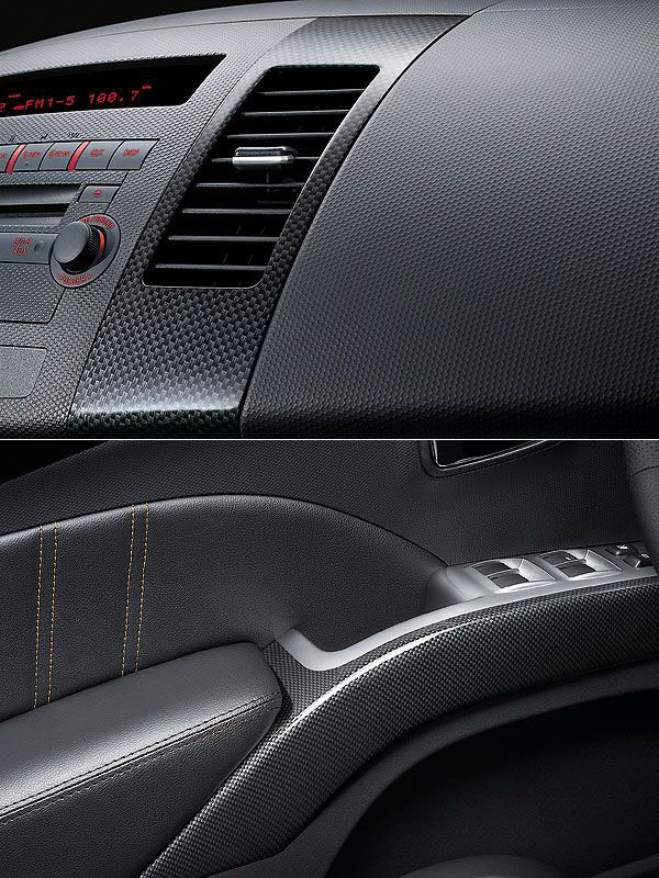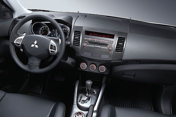 搭載全車原裝空力套件的Outlander iO,原本鍍鉻水箱護罩改為勁黑處理,並換上熾黑HID氣體放電式頭燈,iO車型皆搭配大尺吋18吋鋁圈,並採全新放射狀造型;車尾以iO專屬的金屬銘板作識別,延續iO車系的運動風格。座艙內搭配極曜黑類碳纖門板扶手與出風口,高包覆性雙材質皮椅則以類麂皮混合搭配真皮,並採具立體視覺效果的黃縫線滾邊處理。