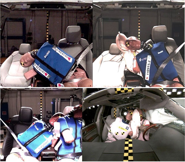當車輛發生側撞時,乘客向另一側的瞬間甩動力量將對人體造成嚴重傷害甚至致死,中央防護氣囊將可減緩此側向之衝擊能量,減少致死率。