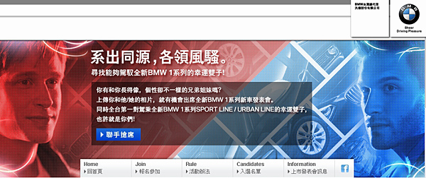 BMW報名活動網站:http://www.bmw.com.tw/event2011/1_5door/