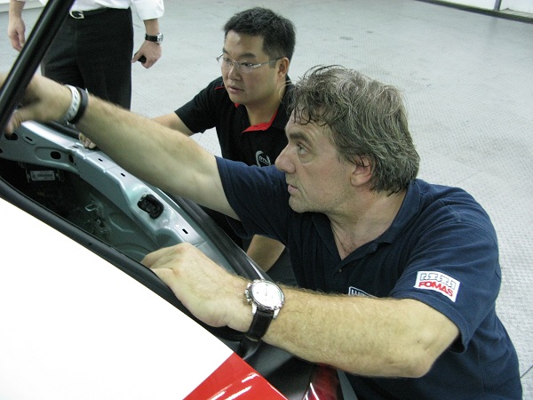 由於時間協調不及,本來防滾籠是要在大鵬灣登場之前就要裝好,因為德國方面的時間搭配不上,因此延後在活動後安裝。這次由ABT派出專業防滾籠製造公司Wiechwes Sports賽車經理Thomas Schiemann前來支援安裝事宜!這位白髮賽車經理來頭可不小,除了公司自營的車隊以BMW固定參加WTCC之外,Thomas Schiemann也有參加去年的紐柏林24小時耐久賽的經驗,可說是現役車手,另外Wiechwes Sports參加澳門大賽,也有30多年的歷史了!可說是一個專業的賽車公司。