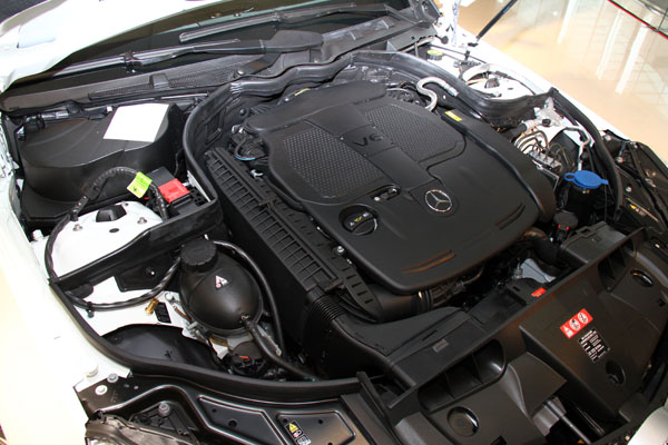 初期引進台灣的E 350 BlueEFFICIENCY Cabriolet,搭載的是一具排氣量3,498c.c.之V6引擎的動力心臟,也是全球首具採用稀薄燃燒(Spray-Guided Combustion)的引擎,利用燃油缸內直噴技術,供給車輛306hp最大馬力,同時峰值扭力於引擎轉速3,500rpm~5,250rpm時提供最大370Nm〈37.755kgm〉輸出,輔以最新7G-TRONIC PLUS手自排變速系統,由靜止加速至時速100km/h只須6.4秒,極速可達250km/h(電子速限)。