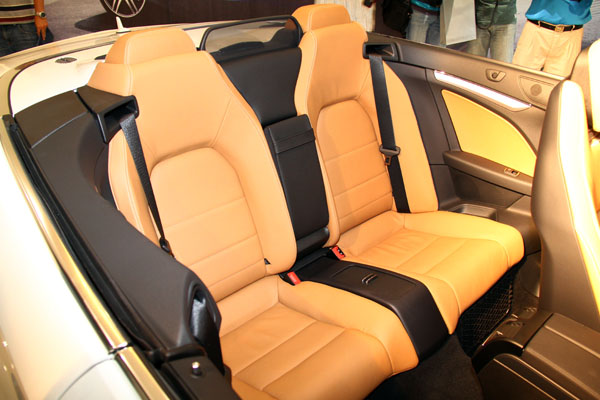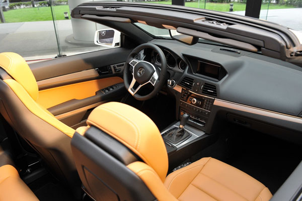 E-Class豪華內裝和更具跑格的設計思維,也都是E-Class Cabriolet的標配:除了Nappa真皮包覆三輻方向盤與排擋桿外、跑車式一體式頭枕座椅包覆性絕佳,橫向排列的管狀座更提供支撐性,乘坐更為舒適。音響娛樂系統採用Audio 20含5.8吋中控彩色顯示幕,除了內建6 CD換片機外,亦標配媒體連接介面(UCI),附通用介面插槽,能夠提供行動音響器材如i-Pod / USB隨身碟等於車上使用,車內娛樂更完備。此外,Keyless Go免鑰匙晶片控制系統 ,亦為E 350 BlueEFFICIENCY Cabriolet之標準配備。