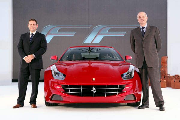 全新概念的FF跑車於10月25日,選擇在具指標性意義、摩登且著名的全豐盛信義105大樓首度在台展出。大中華區總裁兼首席執行官范艾聞先生(Mr. Edwin Fenech)與臺灣蒙地拿總裁宋牧樺先生(Mr. Fabrice de Murat)一同為首次在台灣亮相的FF揭幕。FF是Ferrari法拉利歷史上首部4座4輪驅動GT跑車,也是躍馬自品牌建立以來生產性能最強大並最具使用靈活性和多功能性的12缸中前置車型,FF是一款擁有全面非凡創新設計的高性能跑車,它揭開了Ferrari法拉利歷史的新篇章。