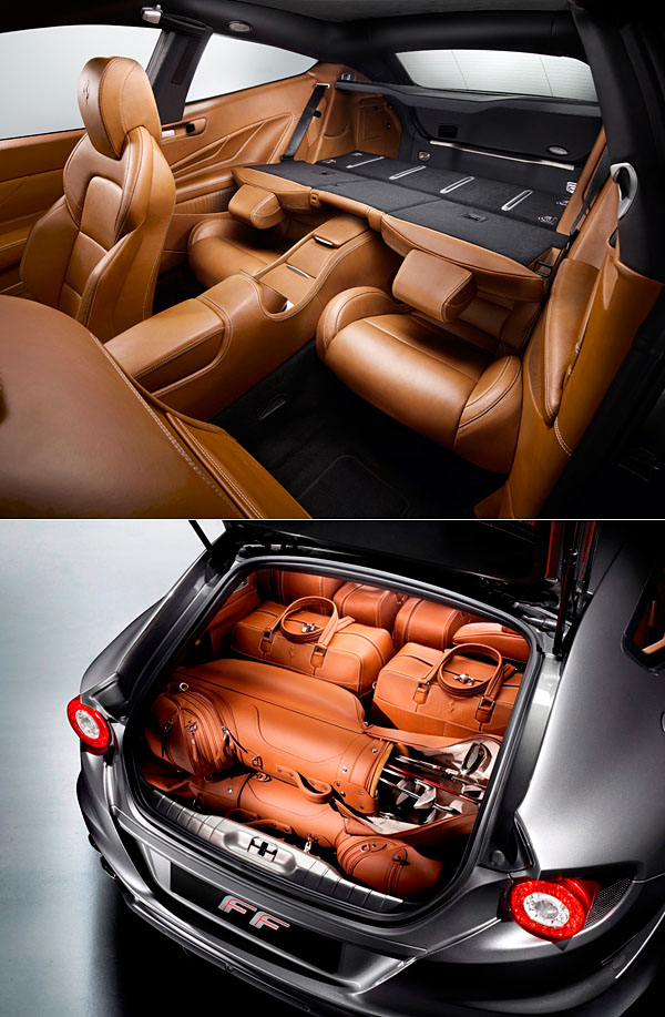 由Pininfarina造型設計的 FF 跑車,反映出其一貫的標誌性設計理念,即將跑車的運動性和多功能性達成完美平衡。舒適環繞的座椅和寬敞的車廂可以輕鬆容納四名成人,也可通過將後排座位折疊,把450升的行李箱擴容至800升。這意味著FF可提供比其他同類車型(甚至許多四門轎車)都更為寬敞的行李空間。