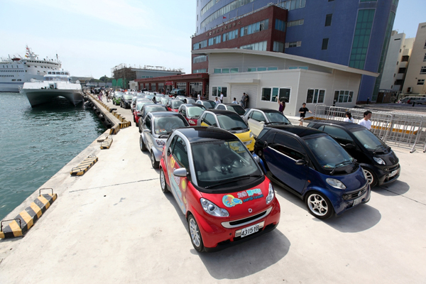 眾家車主齊鳴喇叭的造勢後,近40輛smart fortwo, smart forfour及smart roadster 浩浩蕩蕩地前往高雄港;smart近百人的車隊加上超吸睛的輕巧外型,一路上成為民眾的注目焦點,在眾人的見證下「2010 smart無樂不作澎湖行」也正式上路。