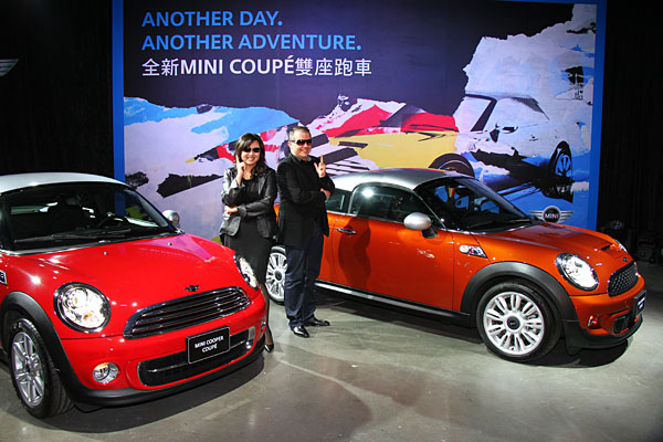 11月9日的發表會現場,Mini原廠代表Mr. Juergen與汎德Mini部門協理李昀潔小姐一同站台相挺,並以特務的角色扮演張顯Mini Coupé的性能特色。