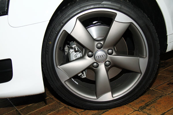 Audi exclusive五臂式"Rotor"造型跑車式樣鋁圈(尺寸為7.5J X18),並對應225/40 R18寬幅跑胎,賦予A3 Sportback極為強烈的性能氣勢。