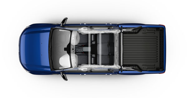新一代Ranger還提供各種被動安全技術,這些技術和安全氣囊的配置因不同車型而異。部分車型首次配備側邊氣囊,它可以在發生側面撞擊時從頂棚打開,保護外側乘客的頭部。該氣囊覆蓋A柱至C柱之間的上部結構與玻璃,從而保護前後兩排的乘客。