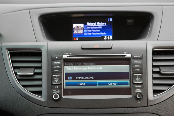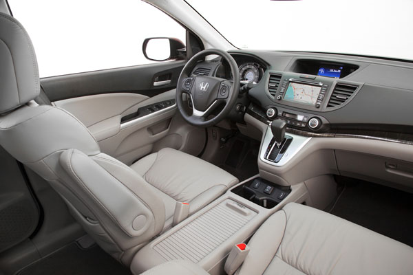 進入全新CR-V座艙中,可以明顯感受到控台設計有大幅度的改變,以往CR-V車系大多會以實用性為依歸,控台設計較為簡潔,騰出較多置物空間,而在全新CR-V上則除了保有實用性外,類三角型地控台無論在造型與質感上都有向豪華房車看齊的味道,上下分層化控台,中央以木紋飾板為區隔,類似於現行Accord設計,中央配置了新一代多功能資訊系統,除了基本的影音、衛星導航等功能,還HandsFreeLink藍牙通訊連結功能,並且是Honda旗下第一款具備SMS短訊語音讀取功能的車款,最上層則另安排了i-MID多功能顯示幕,用以提供車輛資訊與車外輔助顯影系統顯示之用,分層化的顯示安排,將可分散駕駛的讀取訊息壓力,主要訊息皆可在不移開前方視線角度過多的情況下獲取,提升行車安全。新設計的三輻式方向盤,也融入了多向式多功能快捷鍵,提升使用便利性。其他配備部分,於高階車款上,包括巡航定速系統、328W高功率音響、10向電動座椅、雙區恆溫空調、語音辨識衛星導航、後座影音娛樂系統等皆列於配備清單之中,十分豐富。