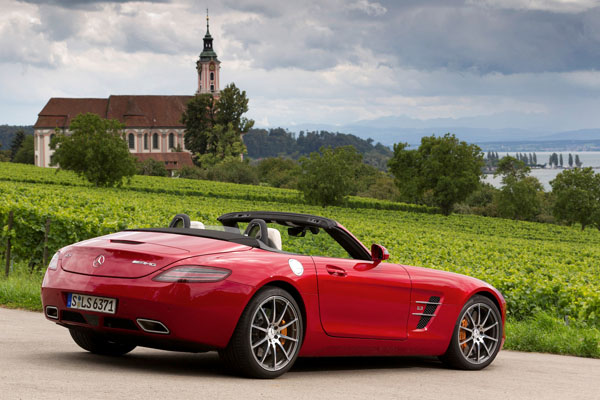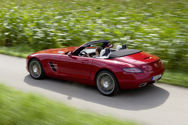 Mercedes-Benz SLS AMG Roadster的誕生,必須由Mercedes-AMG獨立開發的性能跑車-SLS AMG Coupe 車型說起,搭載品牌旗艦AMG 6.2升V8引擎與經典上掀式鷗翼車門,象徵對品牌傳奇300 SL的無上致敬,並以現代科技重新詮釋傳世的絕美設計。SLS AMG Roadster即便少了翱翔的雙翅,然而,樸質的軟篷配色、悠雅修長車頭及摩登短捷車尾的融合,敞篷版別出心裁地激盪出復古且秀雅的神韻。SLS AMG Roadster在車頭的表現上,與SLS AMG並無二致,鑲嵌在進氣護欄上的大型三芒星廠徽、以及刻飾在引擎蓋上的散熱鰭、前葉子板後方的散熱鰓孔「6.3」性能銘牌,兩道鰭線筆直向後方拉曳,適度點綴著銳利流線的視覺感受等種種經典跑車元素,再度重現。