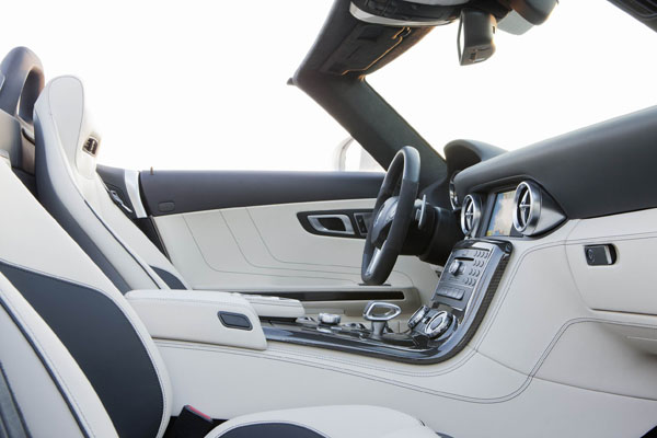 SLS AMG Roadster頂級選配外觀部分,同時引進AMG 與消光色系、designo消光白,軟篷亦有棕色與紅色等不加價選配;內裝部份可選擇頂級單色或雙色designo豪華真皮,以及AMG碳纖維內裝套件;性能套件部分,可選配AMG RIDE CONTROL多模式跑車懸吊、賽車式懸吊、AMG 陶瓷煞車系統等。