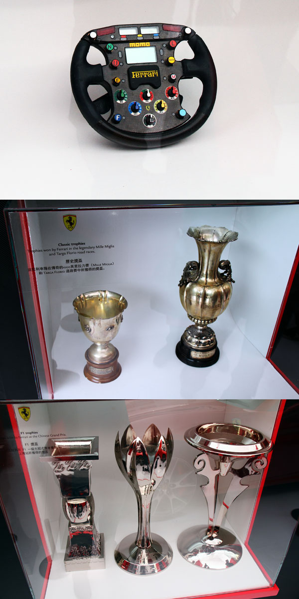 Ferrari於賽場上所獲得的獎盃不勝枚舉,會場中也展出了部分原廠也展出了歷來F1車隊於上海站所獲得的冠軍獎盃,此外也展出了當今F1賽車所使用的方向盤。