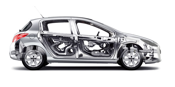 而在側向撞擊上,308為提供車內人員最大防護,308在B柱及C柱部分使用了多層式強化防撞科技,以3層不同厚度強化鋼材結合,其中兩層更採用高張力材質鋼板製成。此外,門柱下方以獨特大型三角結構作為側撞時的堅強門框基礎,也因此308在側撞表現上可達到EuroNcap16分的最高級分。除剛性特別提升的門柱設計,搭配前後車門各兩組強化防撞樑,車門內高分子緩衝吸收裝置,再加上厚實車門檻等,都令308車款具有高度車身剛性。