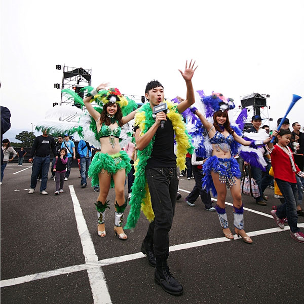 Mini Day 2011會場內與車迷熱情Say Hello的森巴舞者大遊行,讓場內各處傳來不絕於耳的陣陣歡騰。