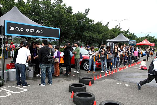 來到冰島區,亮紅耀眼的Mini Coupe向車迷暗示這個關卡很刺激,大型冷凍車給車迷身歷其境彷彿置身北歐的零下體驗。