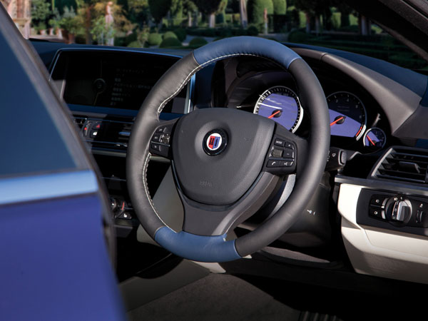 座艙中則採Alpina最具代表性的藍/白相搭為基調,座椅、方向盤等部品全採用 LAVALINA皮革手工縫製,但Alpina仍提供了客製化服務,車主可依個人喜好搭配車室內鋪陳。