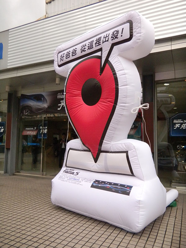 為了順利搶灘,在12月及1月的傳統汽車銷售旺季期間創下優異的成績,三間車廠不約而同趕在年底推出新車搶市,也造成了這難得一見的「黃金週末」盛況!其中,由於舊款車輛提前售罄,在11月初就提早發表新車並展開預接單的All New Mazda5,至12月初已經宣告接單破千,為了要將預接單的氣勢一口氣延續到店頭正式發賣,MAZDA在全省多數的展示間門口設置了四公尺高的大型Facebook打卡標記展示氣球,以現在社群網路上最流行的打卡,用打卡贈獎活動搭配賞車購車就可抽相機、3D電視等等多重抽獎活動,企圖要將店頭發表的集客效益拉到最大!