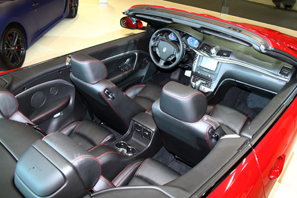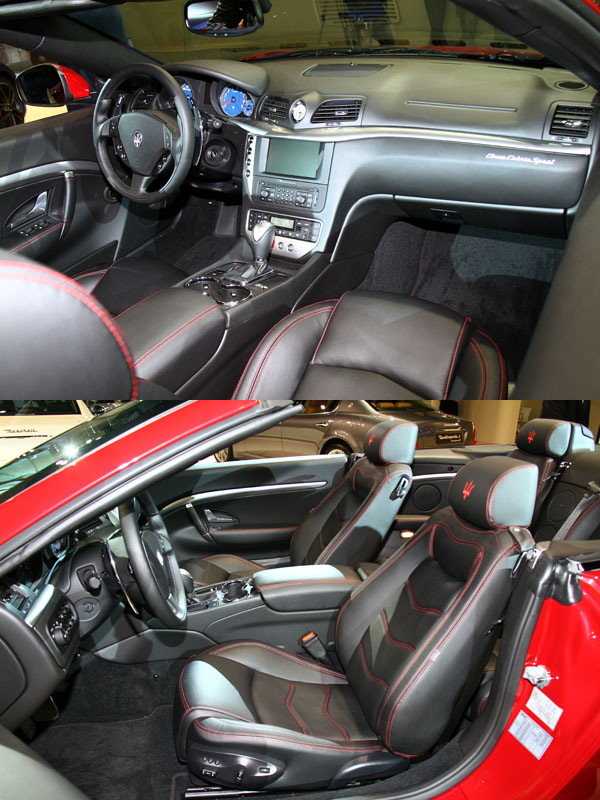 內裝配合外在的修飾,採用全新設計的M-design縫線座椅剪裁,座椅材質以Poltrona Frau真皮材質鋪陳內裝的氛圍,並提供二種顏色選擇(Bianco Pregiato與Grigio Chrono),座椅頭枕鏽有三叉戟廠徽,並提供多達13種的縫線色彩可供選擇。在前乘客座的儀表板上有GranCabrio Sport專屬銘牌。