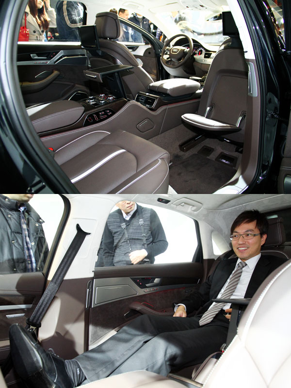 A8L 配這的尊爵舒展椅設計,可將前座完全前移,擁有寬闊伸展的腿部空間,更加上電動延伸式擱腳板,提供極度放鬆的時刻。