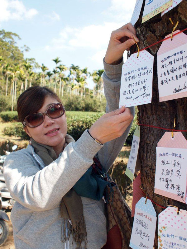Mazda Taiwan執行長掛上許願卡,為草嶺國小祈福。