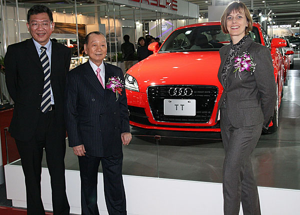 Audi堅強的產品陣容打造四環品牌氣勢,引起現場媒體及參觀民眾的熱烈迴響。(由左至右:工商時報社長王嶠奇、全國商業總會理事長張平沼、台灣奧迪汽車行銷總監Dr. Angelika Hilger)