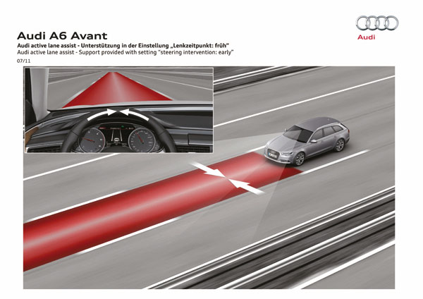 A6 Avant配有整合主動式車道偏離警示系統(Audi active lane assist)的車道變換輔助系統(Audi side assist)。