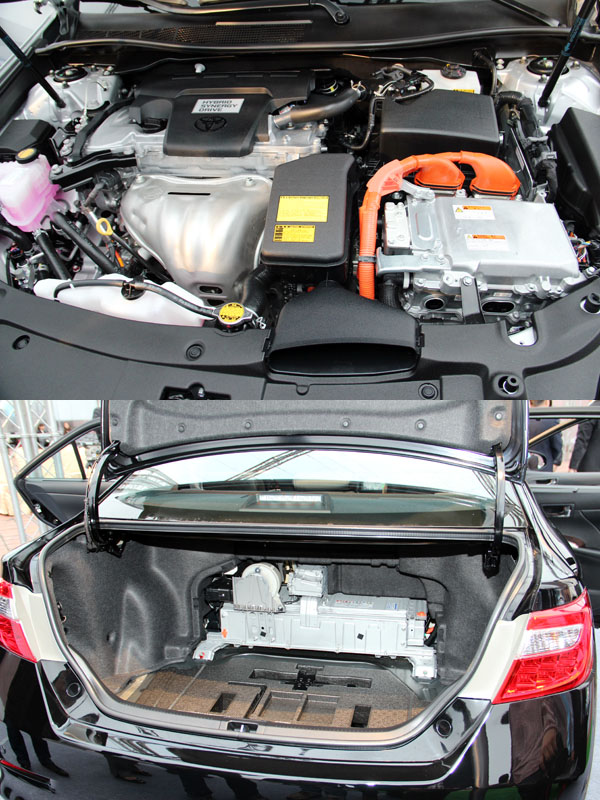 Camry Hybrid搭載之HSD油電複合動力結合一具2.5L 汽油引擎與電動馬達,綜合最大馬力輸出為205ps,以及超過40kgm的扭力輸出。設置於行李廂前方的電池模組,內含204個電池。